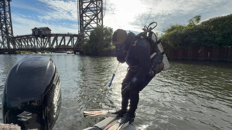 Volunteer from Chaos Divers preparing to search for a vehicle underwater, posted September 24, 2025. Credit: Chaos Divers - Facebook.