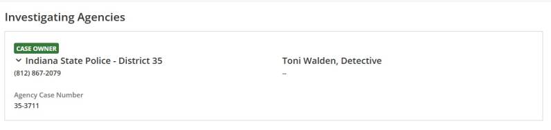Contact information for the investigator assigned to Debra's case. Credit: Namus.gov